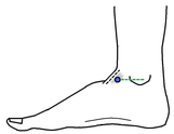 外踝の直下指1本弱のくぼみに取ります。